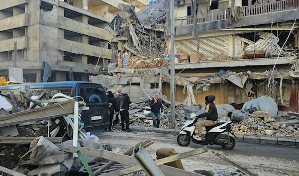 Lebanese rescue members trying to get bodies of the