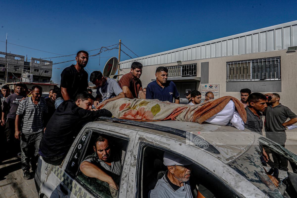 Arriving, at Nasir hospital, the injured and martyred Palestinians, who were massacred by the Israeli genocidal air strikes on Khan Younus, in southern Gaza Strip, on October 2, 2025.
